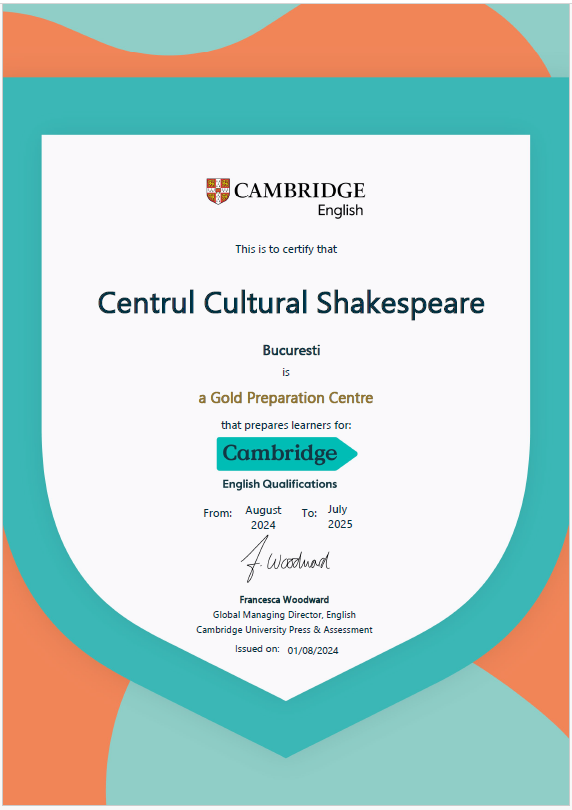Suntem centru acreditat „Cambridge Gold Preparation Centre” — un titlu care certifică standardele noastre ridicate în pregătirea elevilor pentru examenele internaționale recunoscute global.