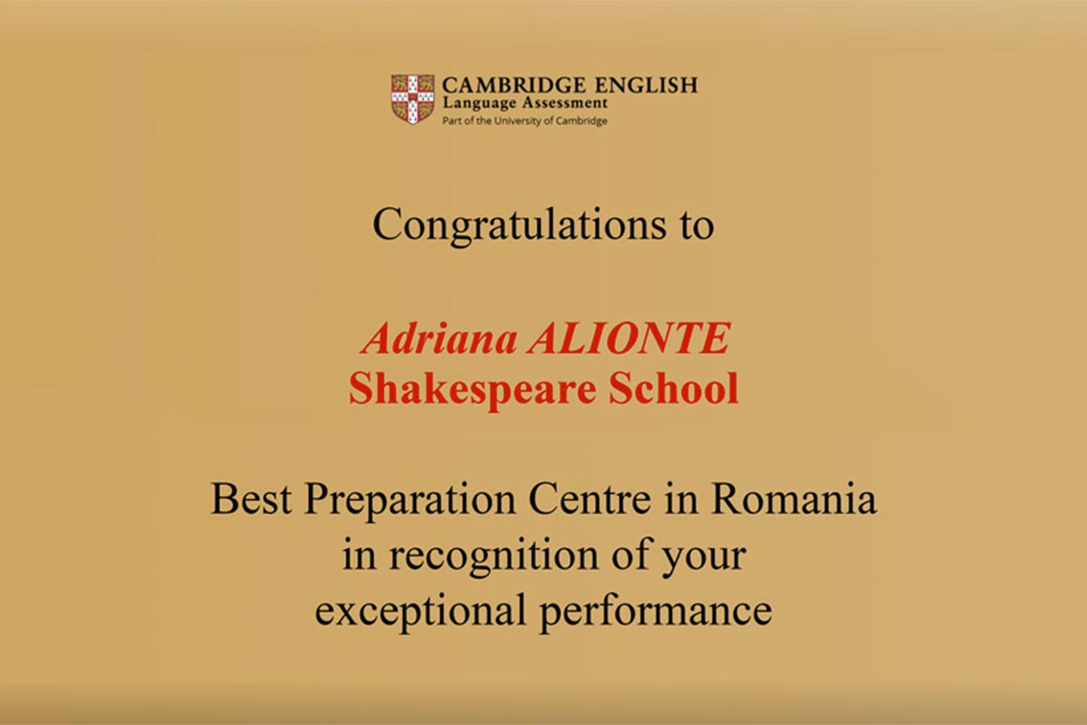 Shakespeare School este un centru educațional cu tradiție și prestigiu, partener educațional Cambridge English. Cursurile noastre de Limba Engleză au la bază un sistem unic de predare și se adresează copiilor, adolescenților și adulților.