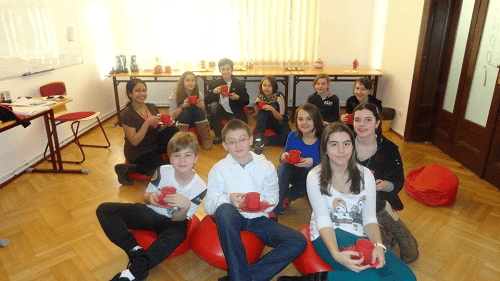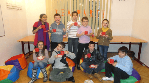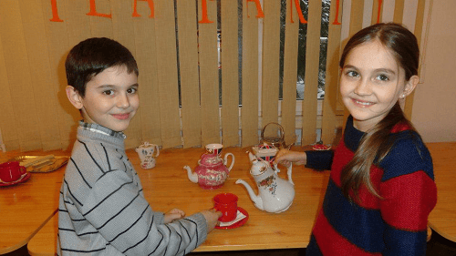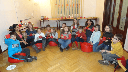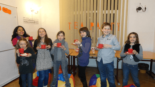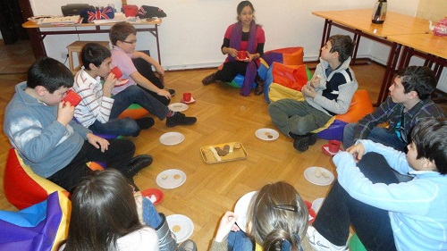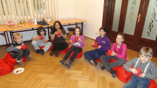 Where did we have the tea parties this time around? Well, the Dorobanti branch of Shakespeare School was the site of 6 tea parties last week, and each one of them started and ended with a bang! The English-loving kids bore the freezing weather to make it to the tea parties which started with the tossing of a squeaky dwarf, and continued with other fast and noisy games.