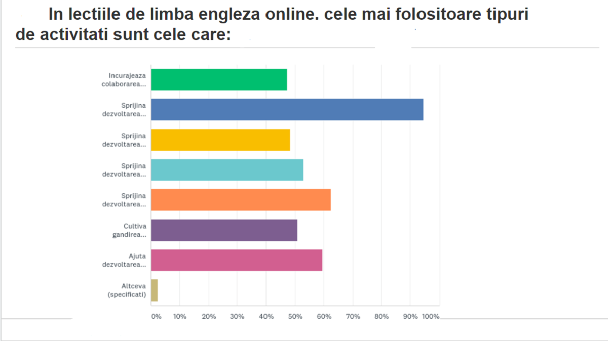 - Activitatile care incurajeaza colaborarea dintre cursanti – 47%