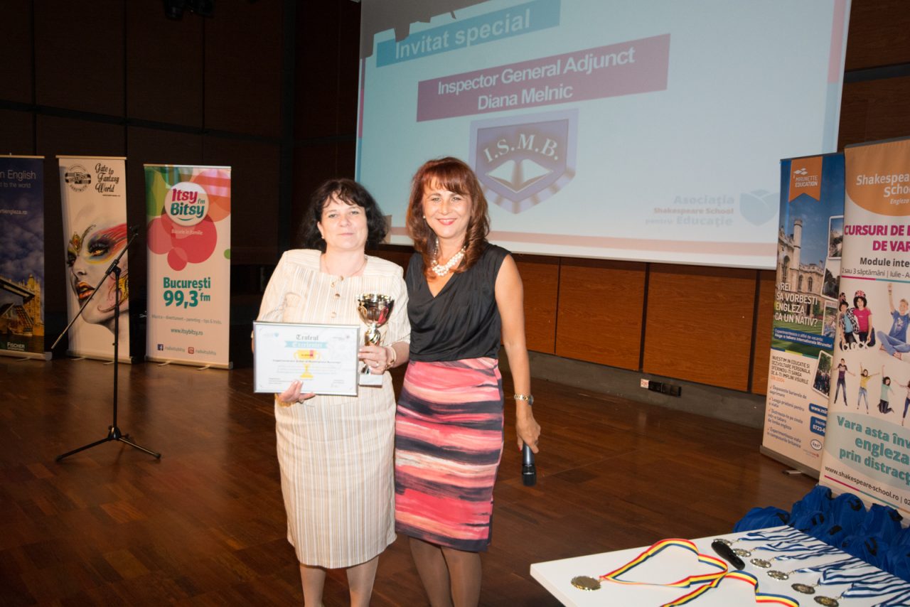 In cadrul festivitatii de premiere a mai fost decernat Trofeul Excelentei, acordat Inspectoratului Scolar al Municipiului Bucuresti, pentru cel mai mare numar de elevi inscrisi in concurs, premiu acceptat in numele ISMB de doamna Diana Melnic, Inspector General Adjunct