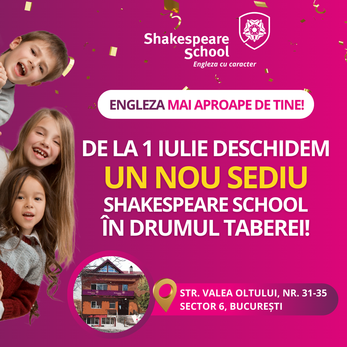 Shakespeare School, centru cu tradiție și excelență în predarea limbii engleze, deschide porțile celui de-al 5-lea sediu – Drumul Taberei, la