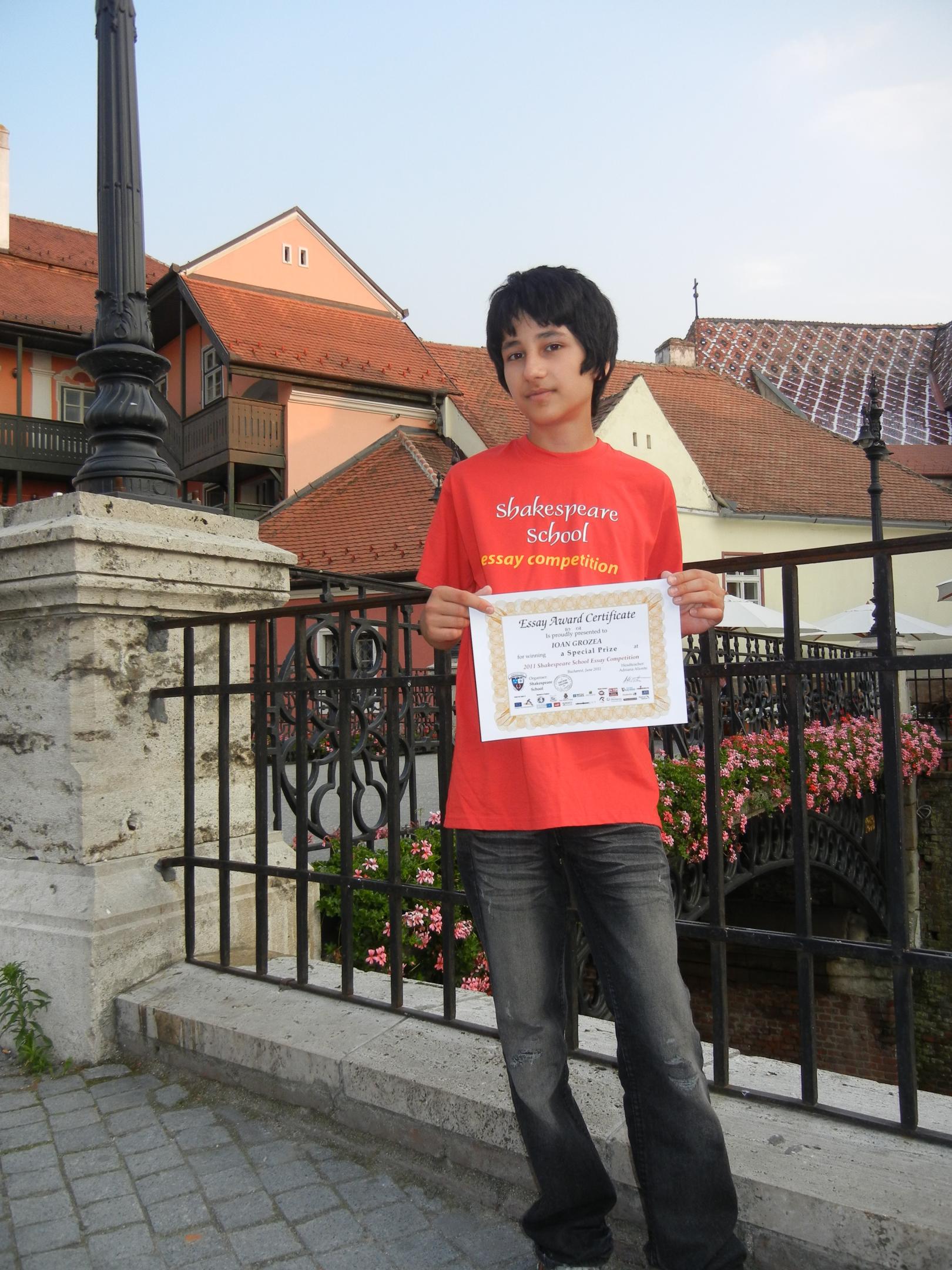 Acest eseu este castigatorul premiului special in cadrul 2011 Shakespeare School Essay Competition, grupa de varsta 11-14 ani, avand ca tema o descriere a unei lumi perfecte pornind de la 4 imagini sugestive. Premiul a constat intr-un cadou surpriza din partea librariei Carturesti, o carte in limba engleza din seria penguin, de la Fischer International, voucher de reducere 25% la un curs de vara de limba engleza la Shakespeare School, discount card oferit de Puma, cadou din partea Reprezentantei Comisiei Europene in Romania. Dorim sa il felicitam pe Ioan pentru faptul ca s-a evidentiat din peste 5100 de eseuri trimise la concursul national de creatie in limba engleza organizat de Shakespeare School si ii uram mult succes in continuare!