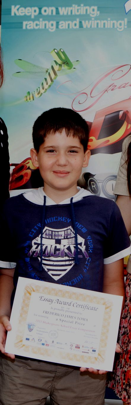 Acest eseu este castigatorul premiului special in cadrul 2011 Shakespeare School Essay Competition, grupa de varsta 11-14 ani, avand ca tema o descriere a unei lumi perfecte pornind de la 4 imagini sugestive. Premiul a constat intr-un cadou surpriza din partea librariei Carturesti, o carte in limba engleza din seria penguin, de la Fischer International, voucher de reducere 25% la un curs de vara de limba engleza la Shakespeare School, discount card oferit de Puma, cadou din partea Reprezentantei Comisiei Europene in Romania. Dorim sa il felicitam pe Frederico (el fiind si cel mai mic ca varsta dintre finalisti) pentru faptul ca s-a evidentiat din peste 5100 de eseuri trimise la concursul national de creatie in limba engleza organizat de Shakespeare School si ii uram mult succes in continuare!