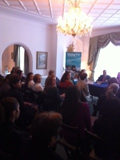 In fata unui public select, alcatuit atat din profesori de limba engleza si directori ai celor mai importante licee si centre de invatare a limbii engleze din Bucuresti, cat si din reprezentanti ai Ambasadei Marii Britanii, ai Ministerului Educatiei si jurnalisti, dl. Robin Poppelsdorff, consultant ESOL al Trinity College London in Europa, a prezentat cele trei tipuri de examene Trinity pentru evaluarea cunostintelor de limba engleza: GESE (Graded Examinations in Spoken English), ISE (Integrated Skills in English) si SEW (Spoken English For Work).