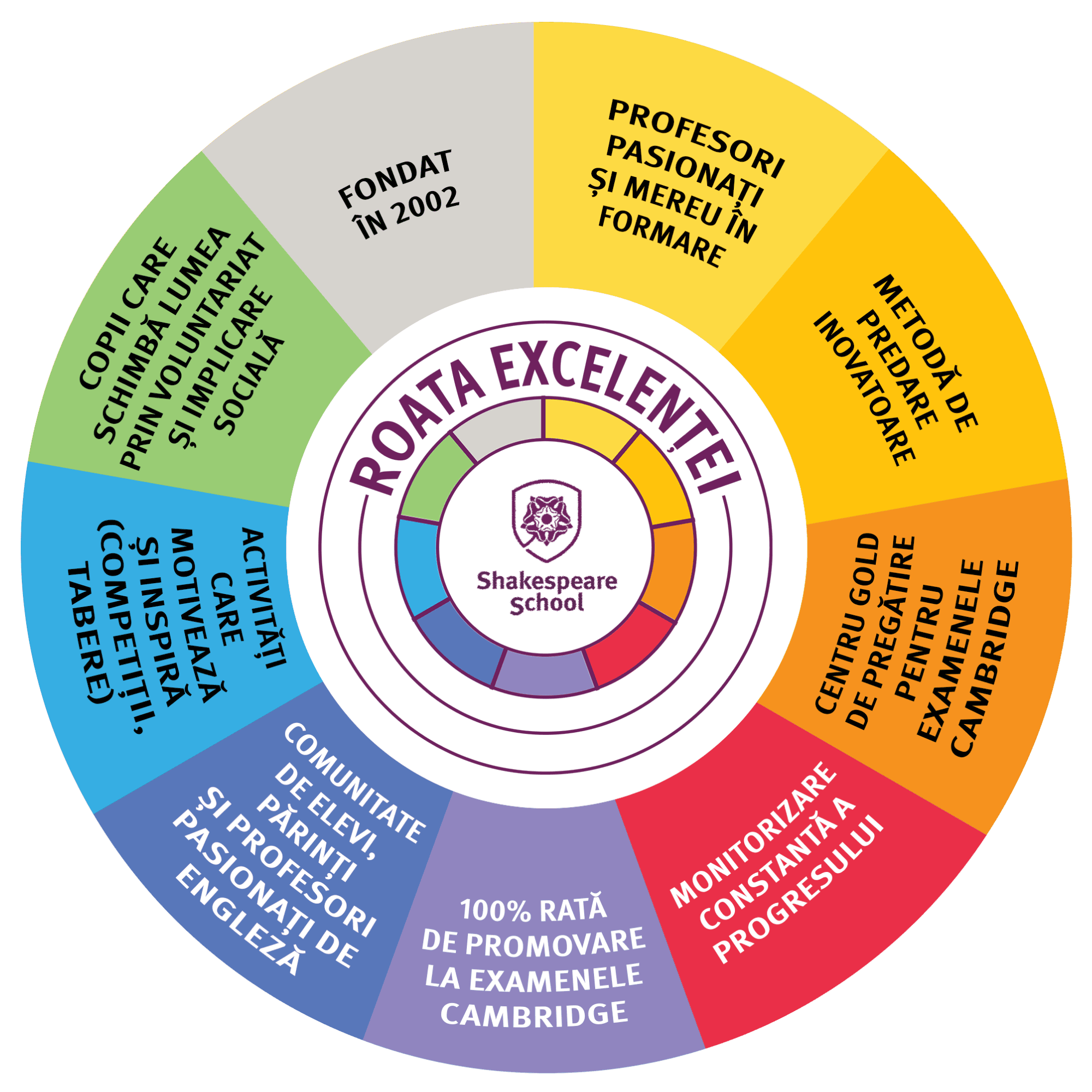 Shakespeare School a răspuns acestei provocări printr-un model educațional unic, ce privește atenția nu ca pe o problemă, ci ca pe o oportunitate: Roata Excelenței™.