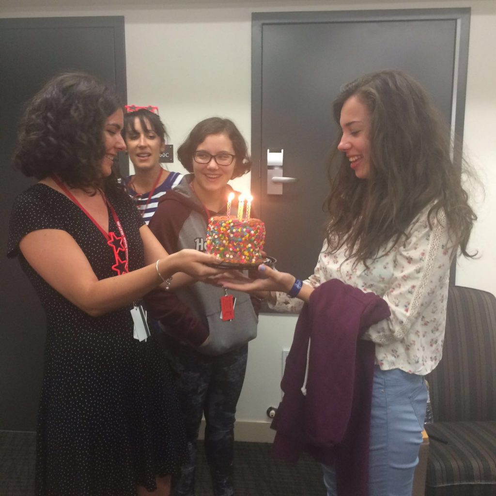 Seara ne-am bucurat de un alt eveniment important: draga noastră Ana a împlinit astazi 15 ani si am serbat-o cu un tort surpriza cu bomboane si lumânări, cantandu-i in cor cu toții “la multi ani” 🙂