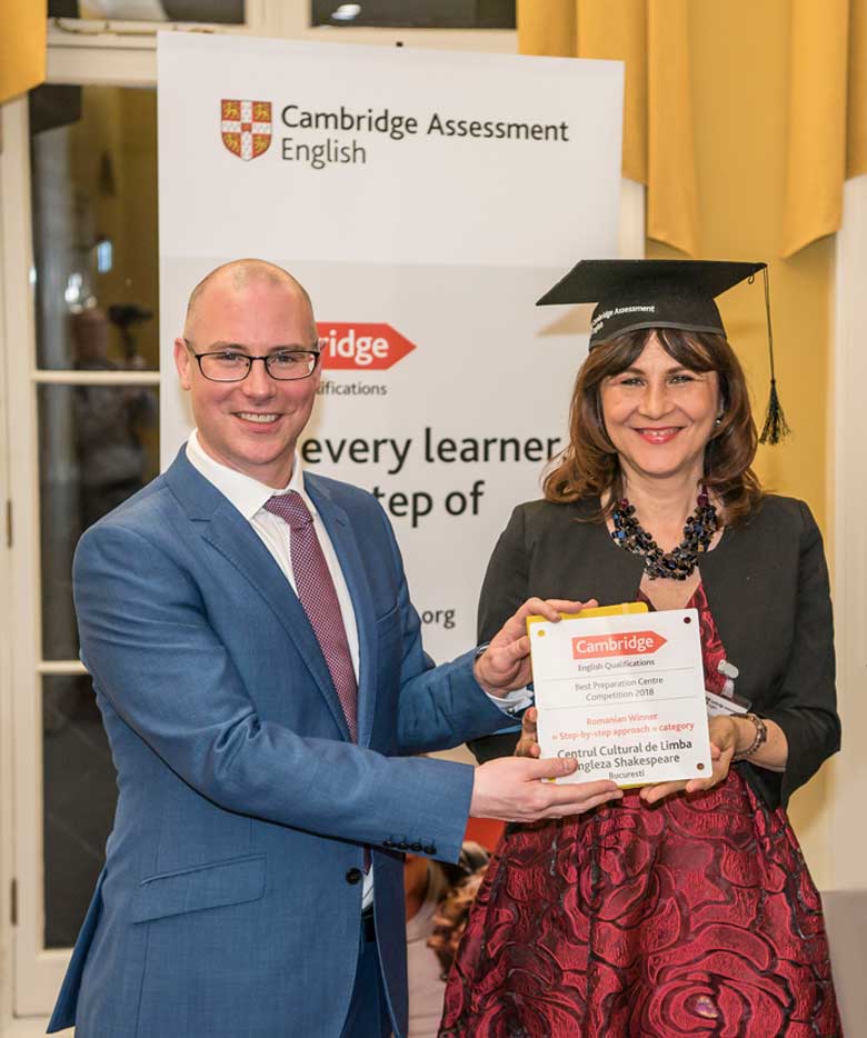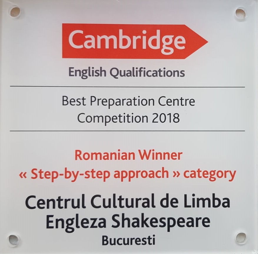 Dupa distinctia “Best Preparation Centre” acordata in 2017 de Cambridge English Language Assessment, Centrul Cultural de Limba Engleza Shakespeare castiga un nou premiu important: Cel mai Bun Centru de Pregatire a Examenelor Cambridge, la categoria “abordare Step by Step”.