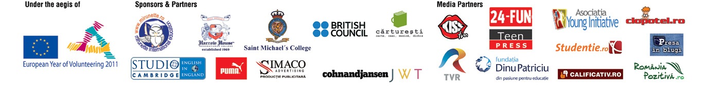 Nu in ultimul rand, multumim partenerilor media care ne-au ajutat sa popularizam acest concurs si carora li se datoreaza in buna masura succesul acestuia: TVR, Kiss FM, Fundatia Dinu Patriciu, Teen Press, Asociatia Young Initiative, Mediafax, Presa in Blugi, Romania Pozitiva, 24fun.ro, calificativ.ro, clopotel.ro, studentie.ro, blogul amdoar18ani.ro, Agentiadecarte.ro! Multumiri speciale dorim sa oferim si agentiei Cohn and Jansen care a semnat campania de comunicare a concursului avand drept slogan “Write, race and win!“, dar si tipografiei Simaco Advertising si companiei Puma Romania, care va oferi premiantilor articole sportive!