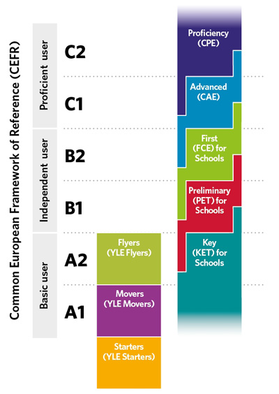 Trebuie sa mentionam ca certificatele obtinute in urma promovarii examenului sunt emise de Universitatea Cambridge ESOL, care ofera cele mai valoroase calificari de limba engleza, recunoscute de aproximativ 12500 de organizatii din intreaga lume.