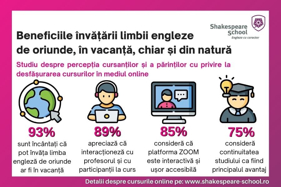93% dintre cursanți sunt încântați de faptul că pot învăța limba engleză de oriunde ar fi în vacanță, indiferent de