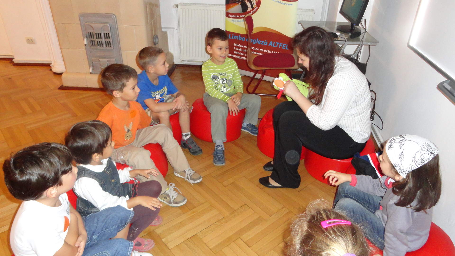 DSC00527Speram ca atmosfera destinsa si metoda de lucru de la Shakespeare School vor stimula creativitatea cursantilor nostri si ii vor apropia cat mai mult de limba engleza, lectiile devenind astfel o adevarata placere!